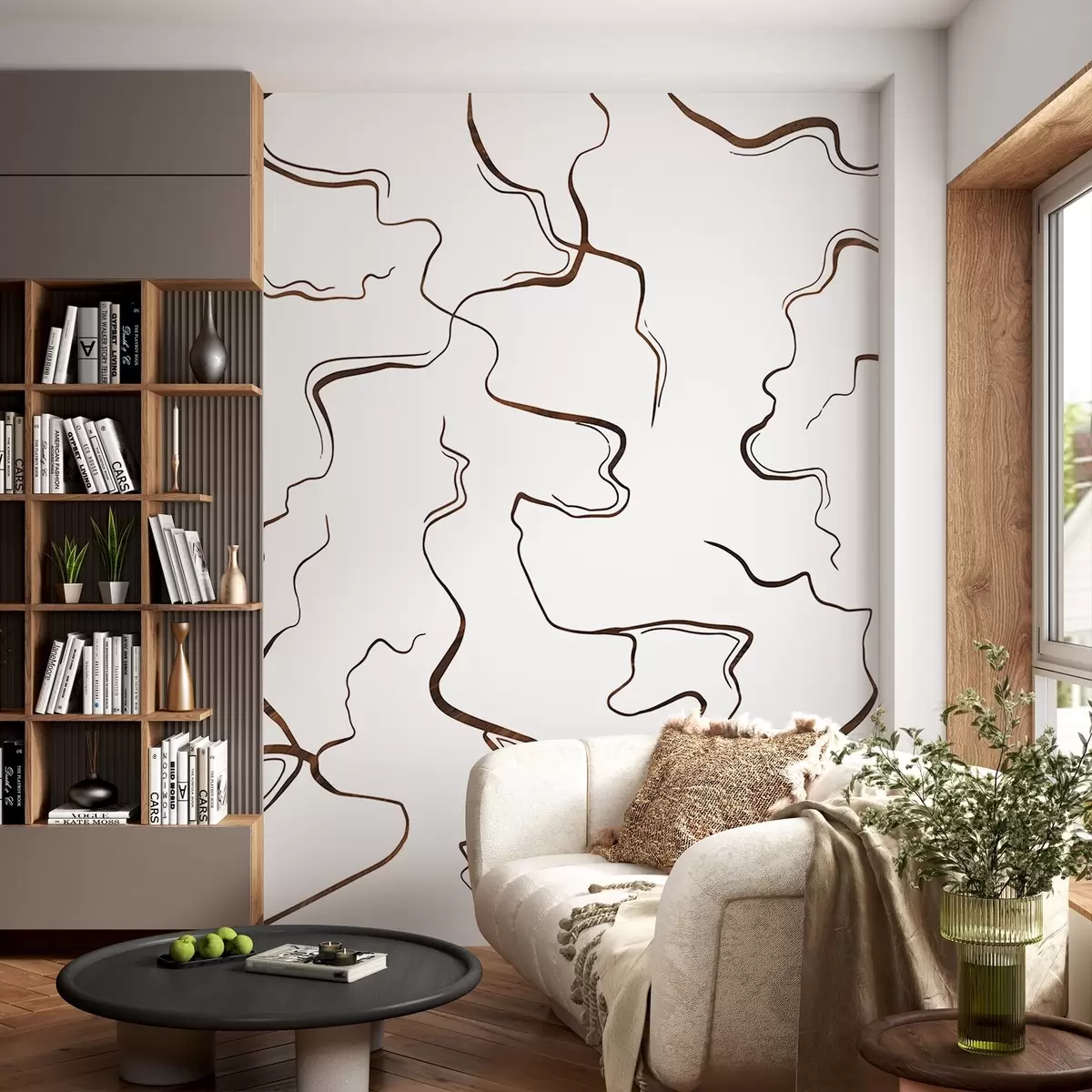 Carta da parati Linee geometriche, stile inchiostro, astrazione, colori marroni nr. w03436v1