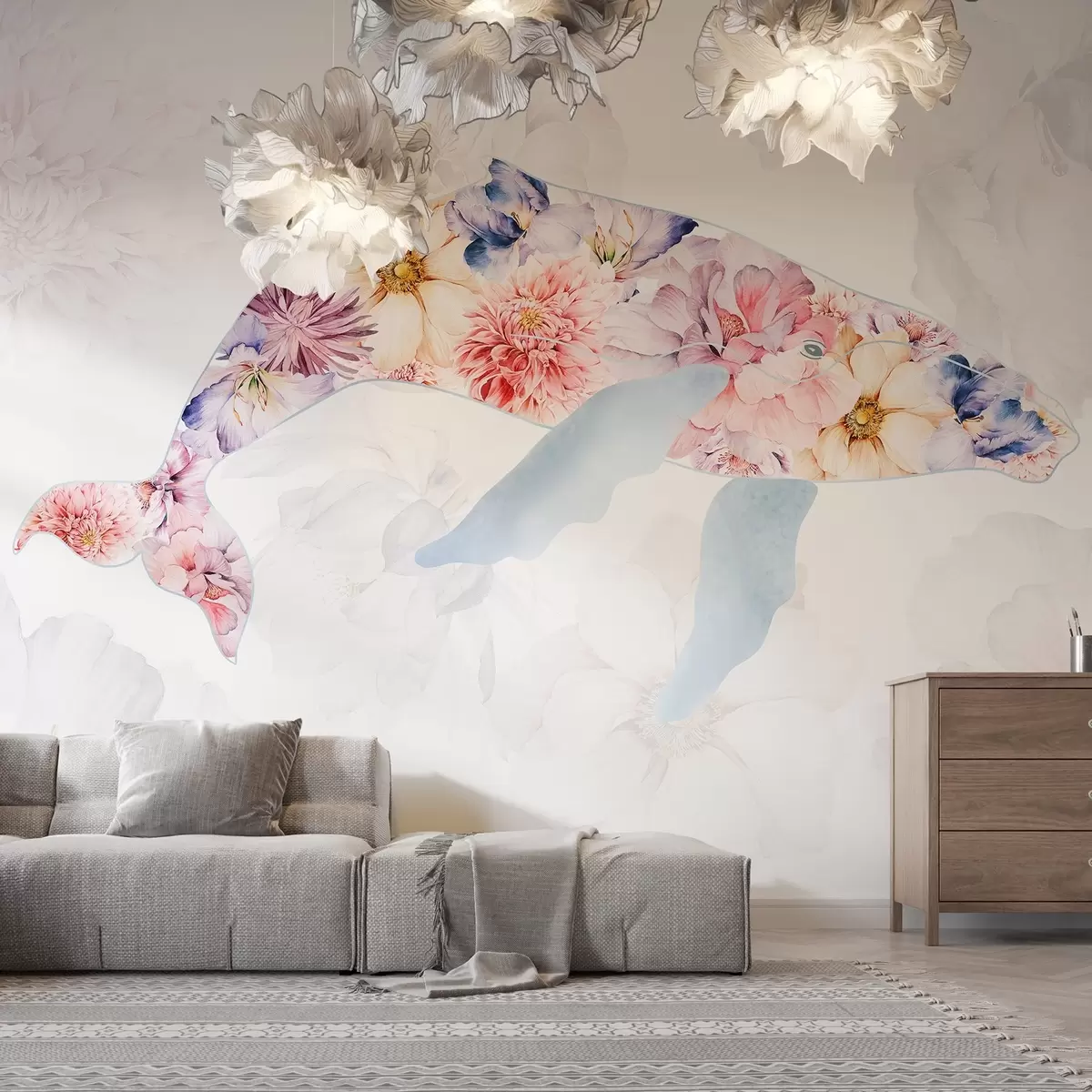 Carta da parati Balena con fiori acquerellati, animali dell'oceano, minimalismo, colorato nr. w03446