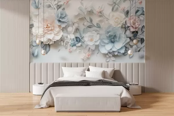 Carta da parati fiori delicati e ariosi con effetto volume nello stile della pittura ad olio nr. w03457