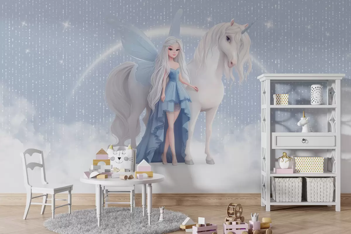 Carta da parati Una fata con un unicorno tra le nuvole nr. w03527v1