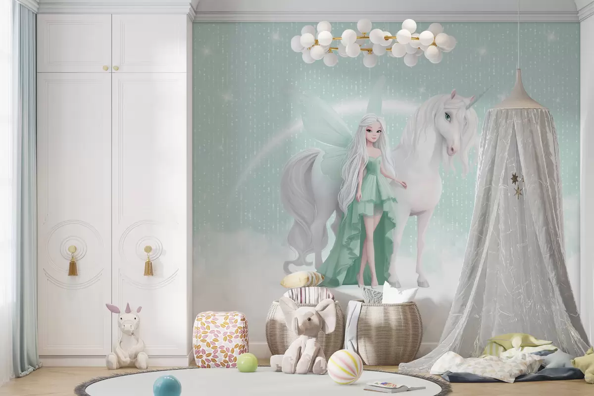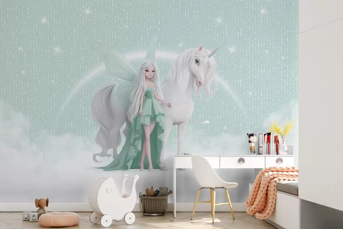Carta da parati Una fata con un unicorno tra le nuvole nr. w03527v2