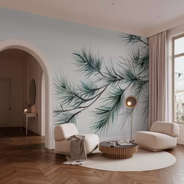 Carta da parati Imitazione di ramo di abete rosso ad acquerello nr. w03572