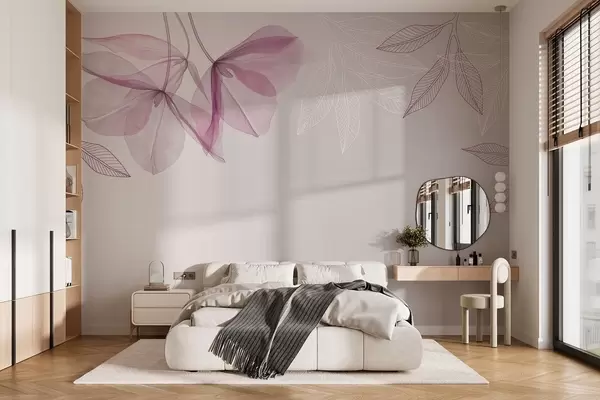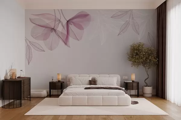 Carta da parati delicati fiori e foglie traslucidi nei toni del viola nr. w03616v4