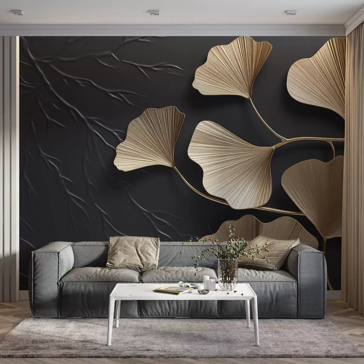Carta da parati Fogliame volumetrico su una parete scura nr. w03650v1