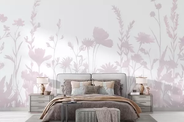 Carta da parati Prato estivo, rustico, fiori, tavolozza di colori rosa nr. w03670v2