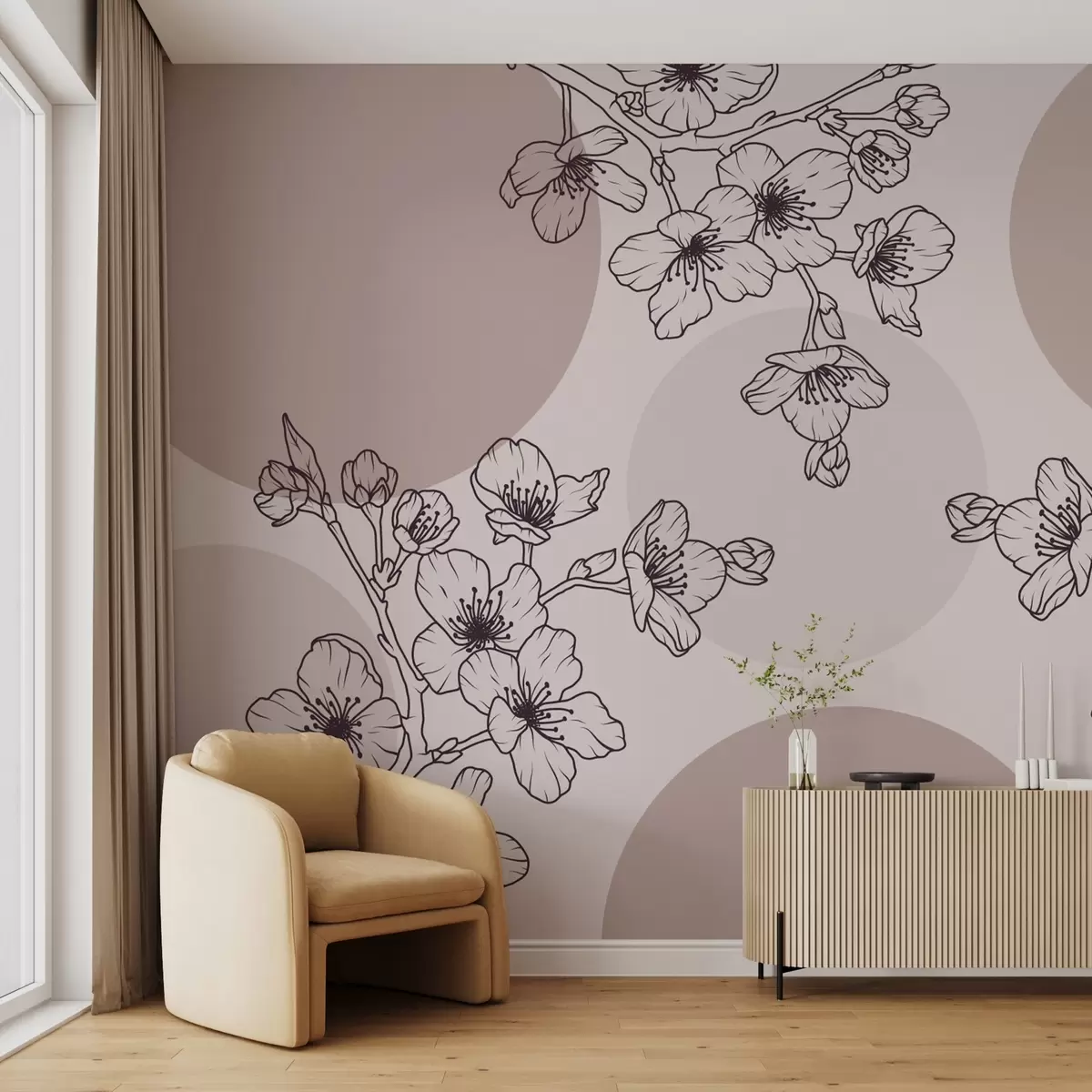 Carta da parati Rami con fiori su cerchi colorati nei toni del marrone nr. w03712