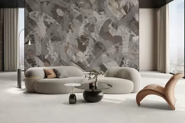 Carta da parati astrazione stormo di farfalle nei toni del grigio e del marrone nr. w03725