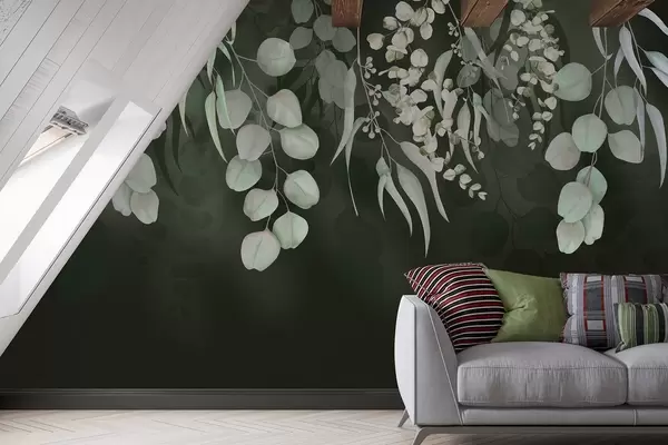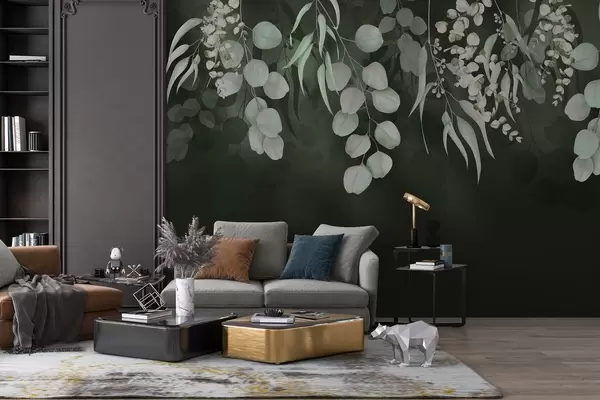 Carta da parati Foglie tropicali su sfondo verde scuro, floreale nr. w03752