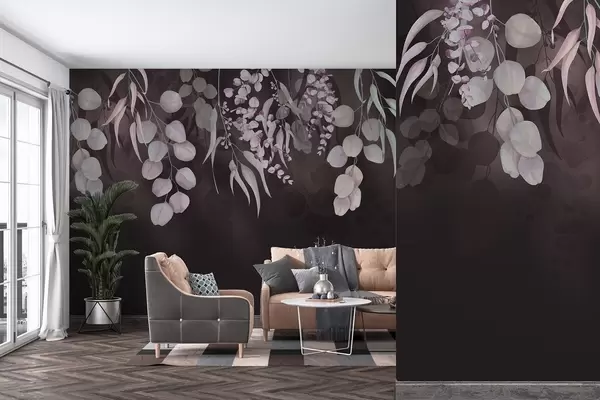 Carta da parati Foglie tropicali su sfondo bordeaux scuro, floreale nr. w03752v1