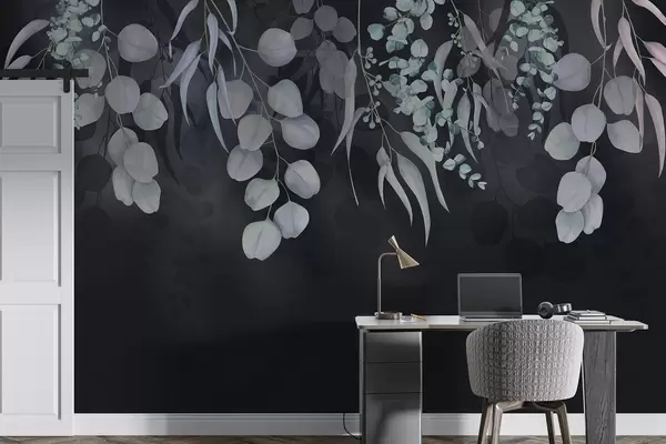 Carta da parati Foglie tropicali sullo sfondo blu scuro, floreali nr. w03752v2