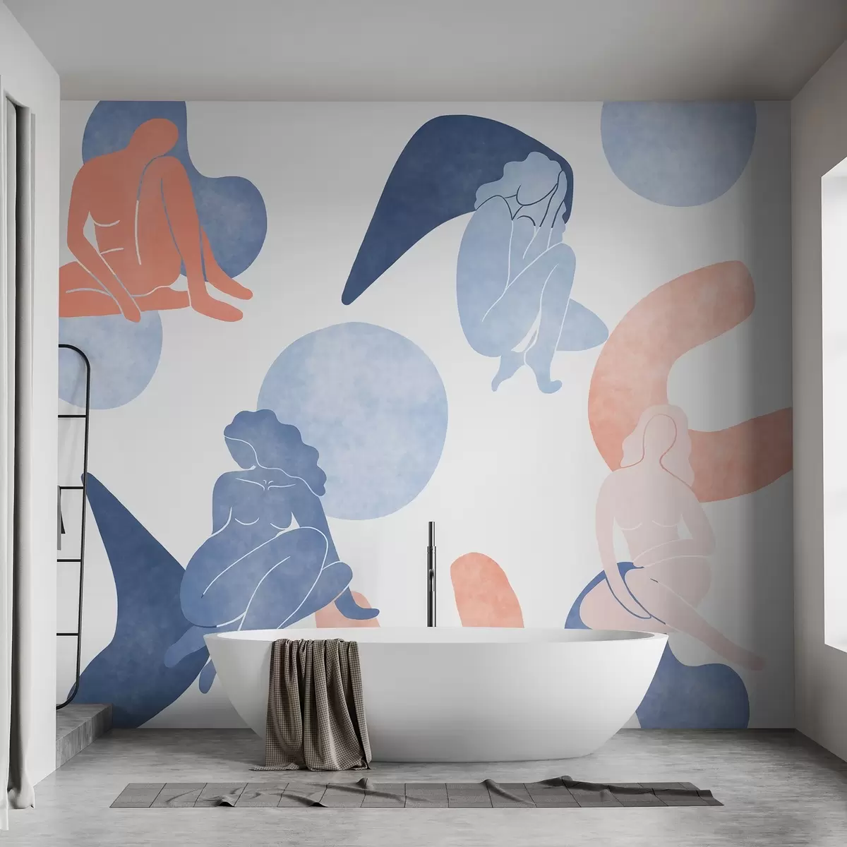 Carta da parati Astrazioni geometriche con silhouette femminili, stile boho, blu, beige, rosa nr. w03753v1