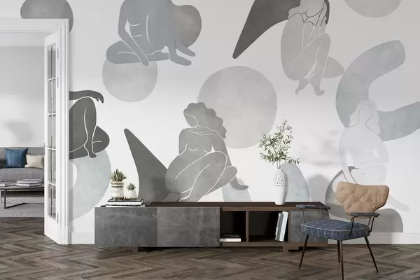 Carta da parati Astrazioni geometriche con silhouette femminili, stile boho, colori grigi nr. w03753v5