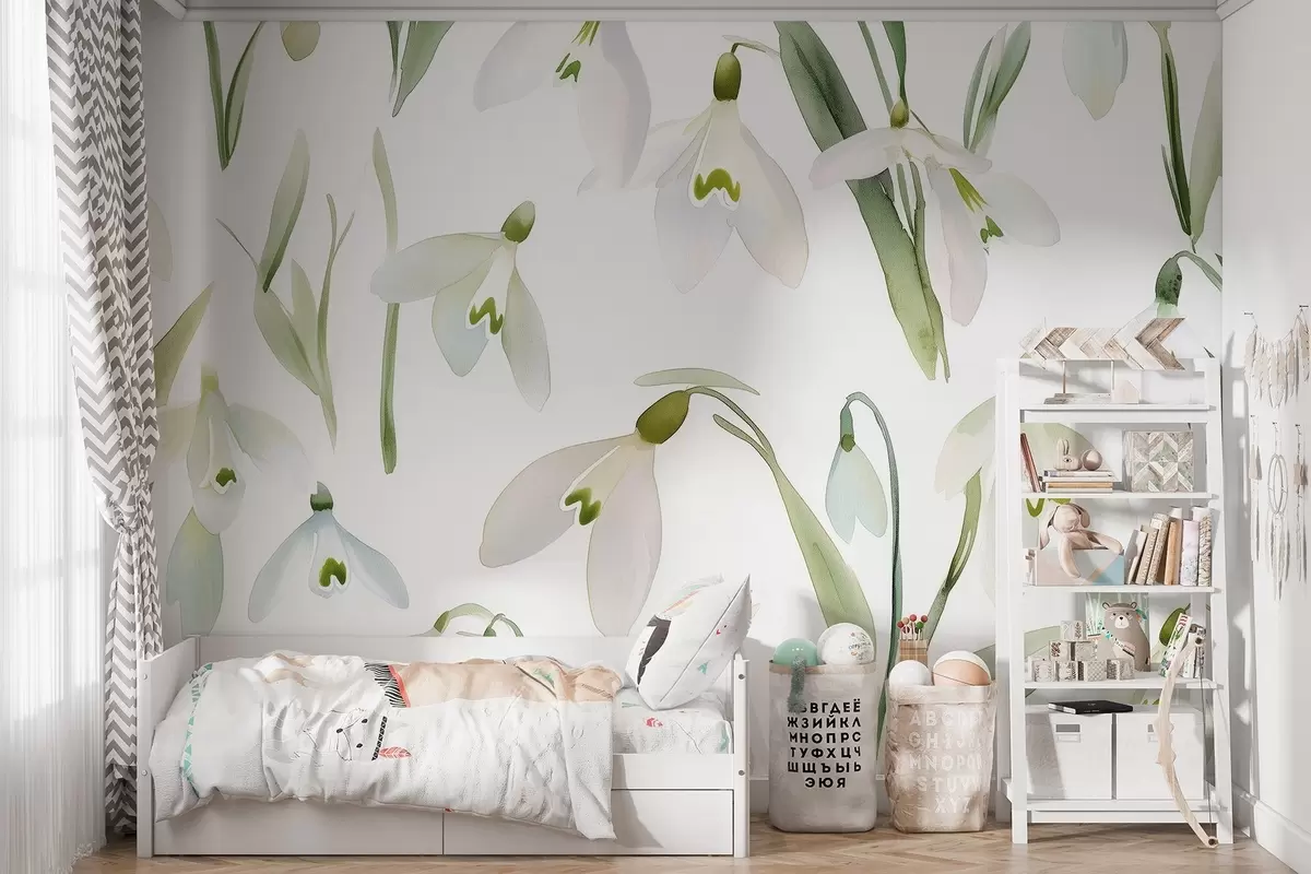 Carta da parati Fiori di bucaneve in stile acquerello, colori naturali nr. w03754