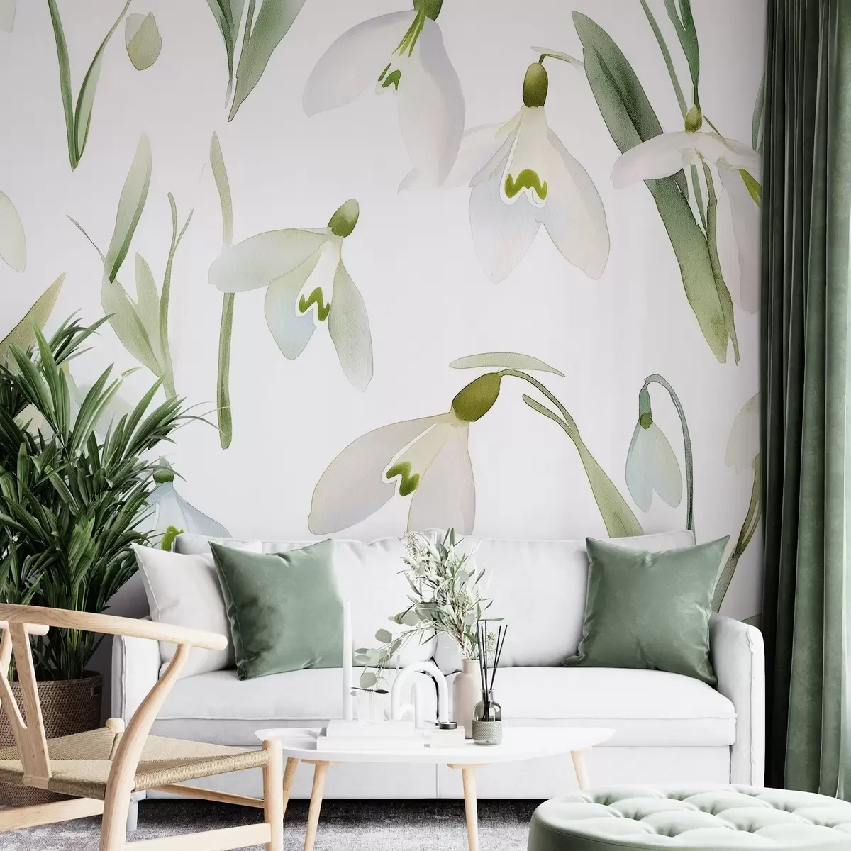 Carta da parati Fiori di bucaneve in stile acquerello, colori naturali nr. w03754
