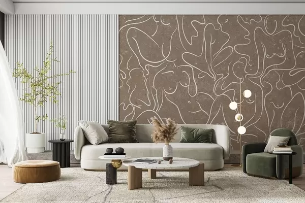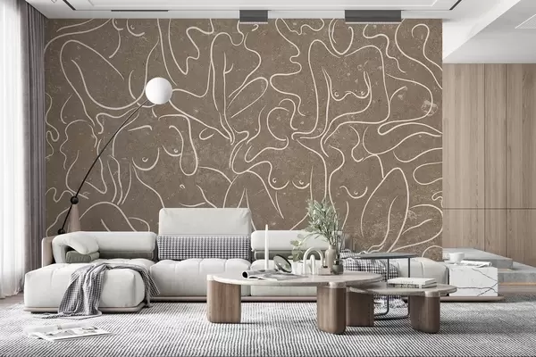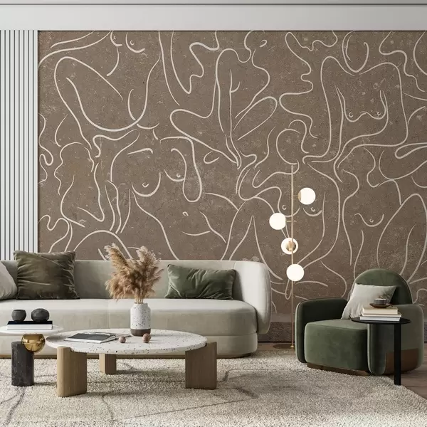 Carta da parati Disegno di linea sagome anatomiche, astrazione, sfondo beige nr. w03756