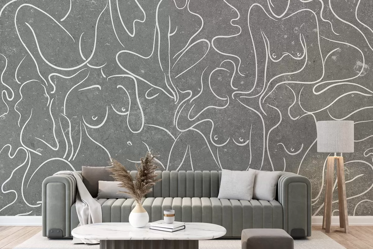 Carta da parati Disegno a linee di sagome anatomiche, astrazione, sfondo grigio nr. w03756v1