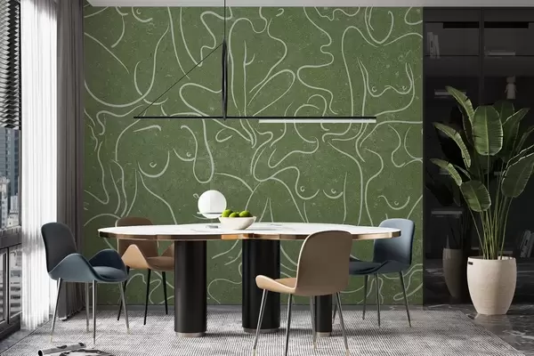 Carta da parati Disegno di linea sagome anatomiche, astrazione, sfondo verde nr. w03756v2