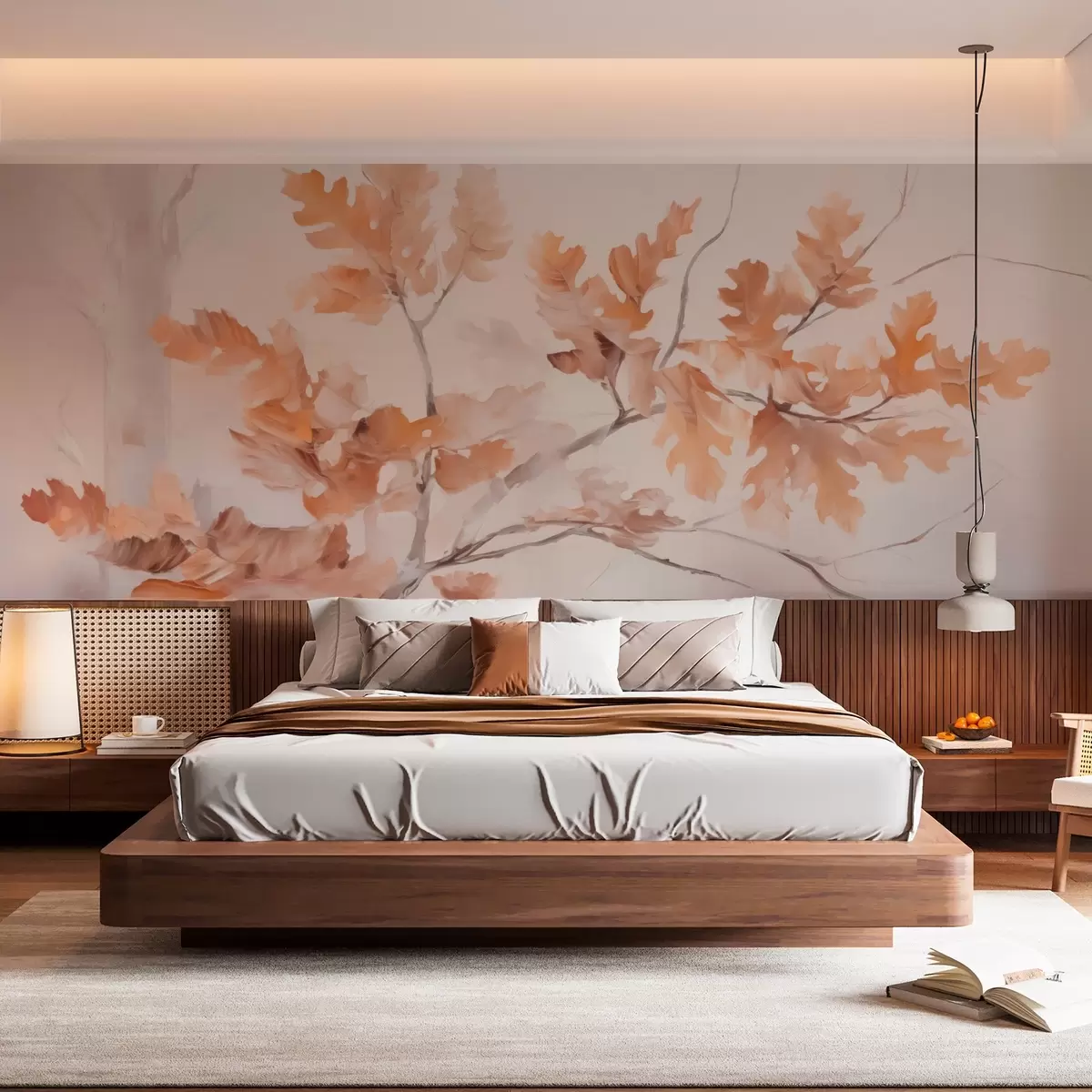 Carta da parati Ramo di quercia con foglie imitazione di pittura nr. w03772
