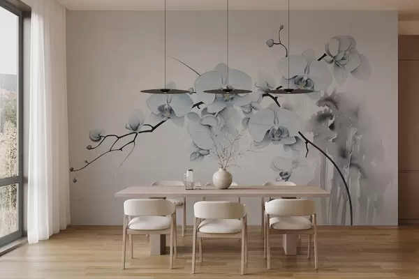 Carta da parati Orchidee acquerellate in stile giapponese su sfondo chiaro nr. w03795