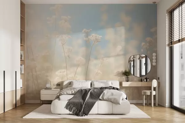 Carta da parati Delicato campo di fiori secchi alla luce sfocata del sole nr. w03801