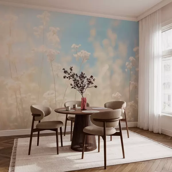 Carta da parati Delicato campo di fiori secchi alla luce sfocata del sole nr. w03801