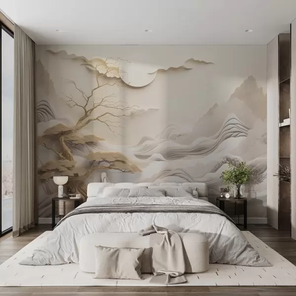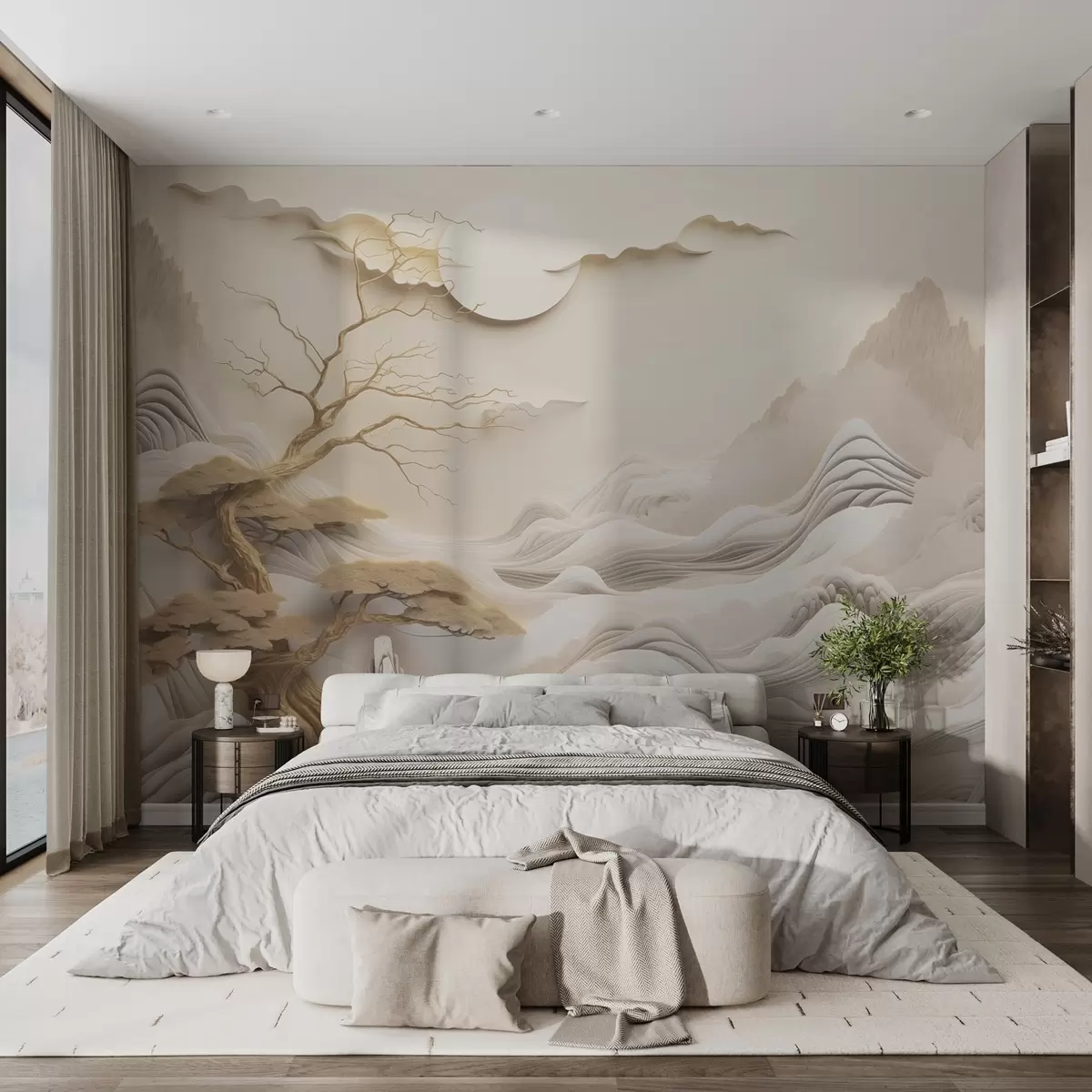 Carta da parati Paesaggio orientale con alberi e montagne nr. w03803