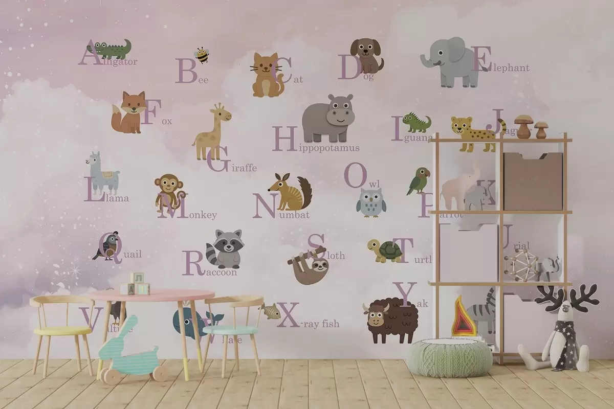 Carta da parati Alfabeto con lettere rosa su sfondo cielo nr. w03810