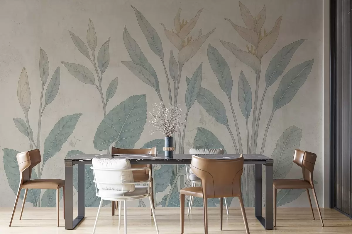 Carta da parati Foglie grunge su un vecchio muro nr. w03823