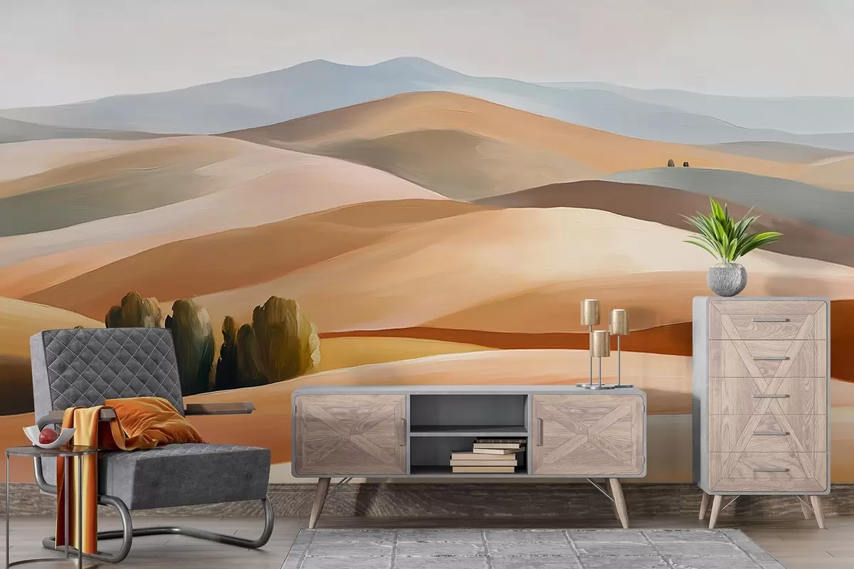Carta da parati Paesaggi con alberi, Toscana, colori naturali, stile ad olio nr. w03880