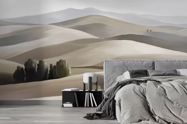 Carta da parati Paesaggi con alberi, Toscana, colori beige e grigio, stile olio nr. w03880v1