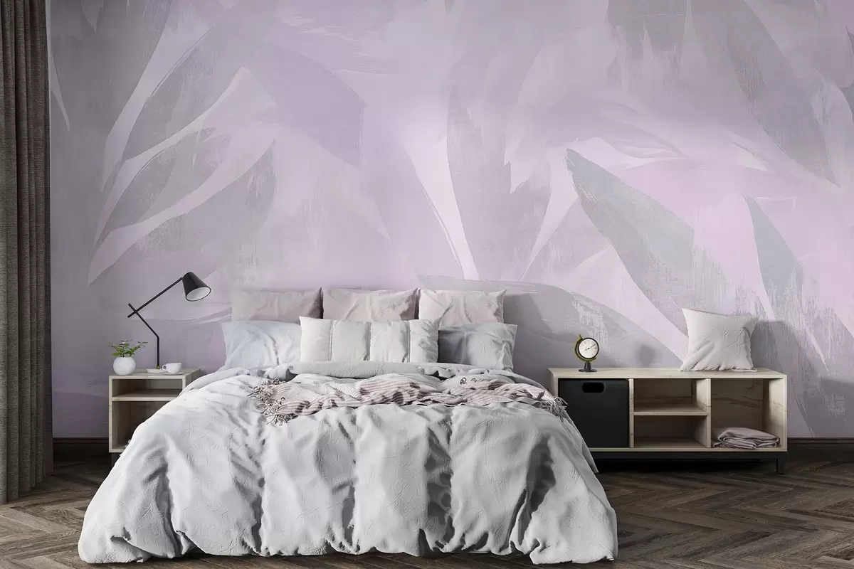 Carta da parati Foglie tropicali, fiori, palme, stile pastello, colori viola nr. w03881v1