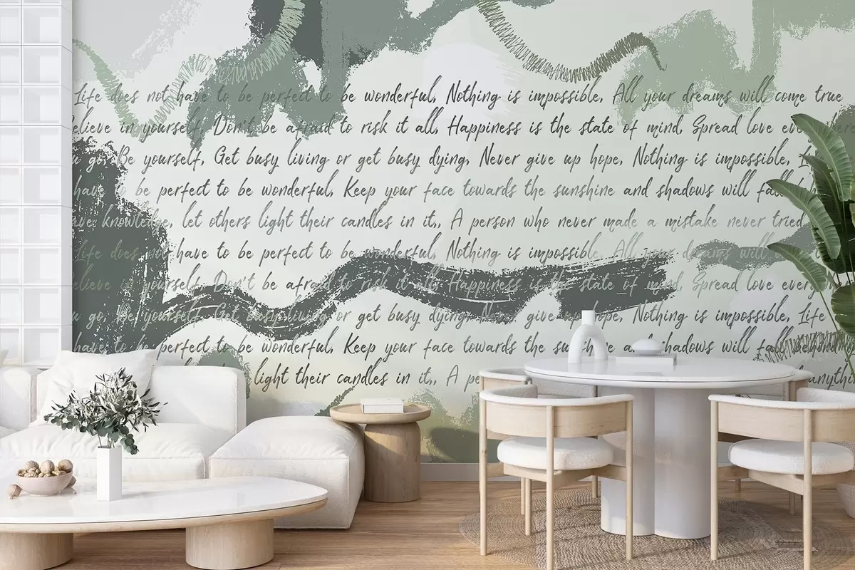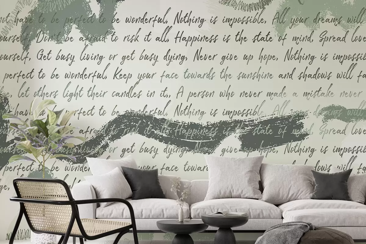 Carta da parati Design con citazioni ispirazionali, astrazione, colori verdi nr. w03909v1
