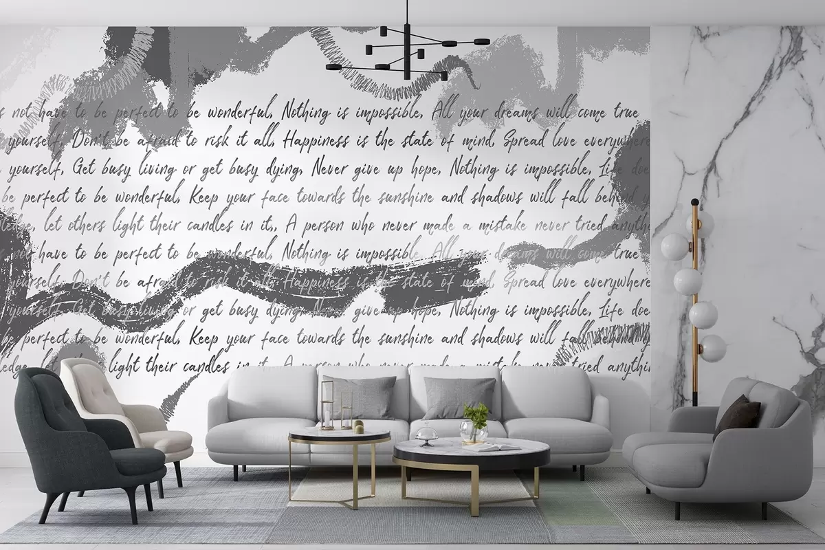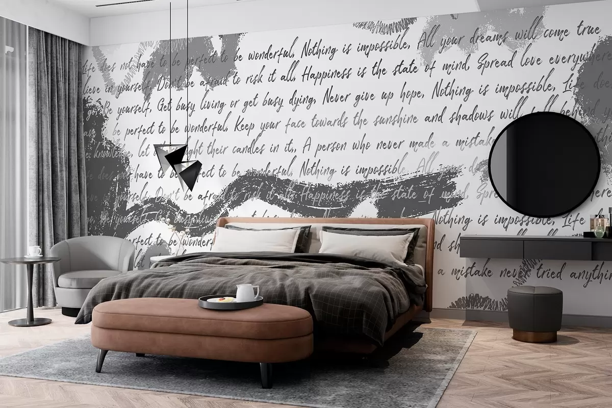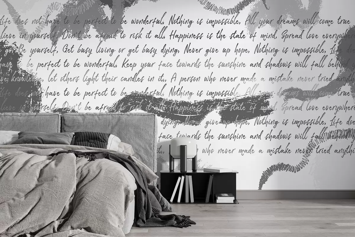Carta da parati Design con citazioni ispirazionali, astrazione, colori grigi nr. w03909v4