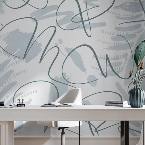 Carta da parati Astrazione calligrafica con lettere, pennellate, colore blu nr. w03913v1