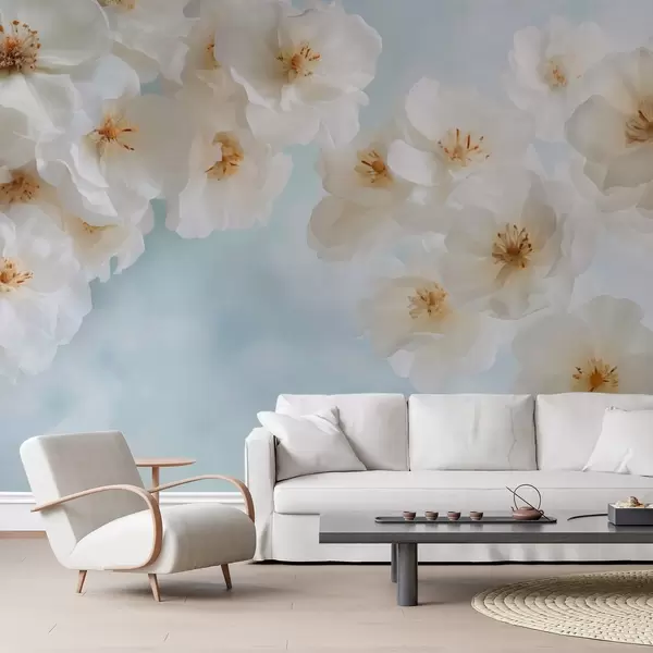 Carta da parati Delicati fiori di grandi dimensioni su sfondo azzurro nr. w03931v1
