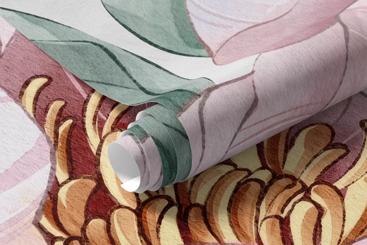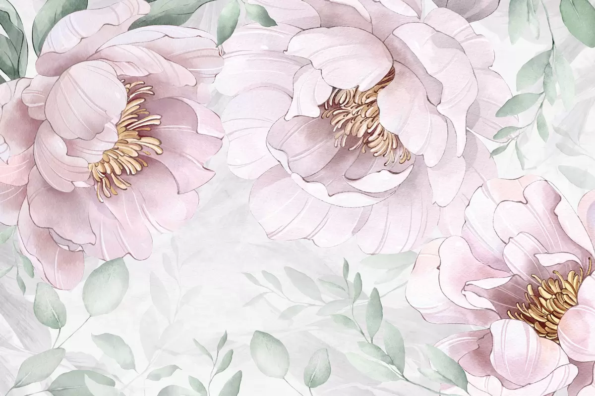 Carta da parati Imitazione di peonie rosa ad acquerello nr. w03932v2