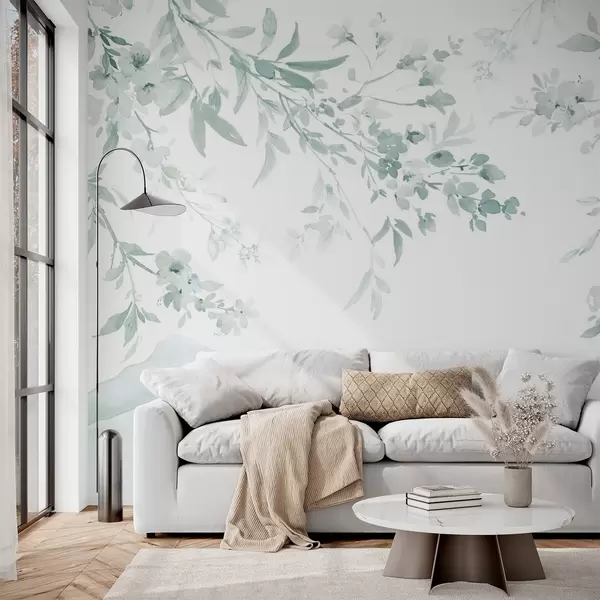 Carta da parati Rami fioriti, imitazione dell'acquerello, sfumature verdi nr. w03935v3