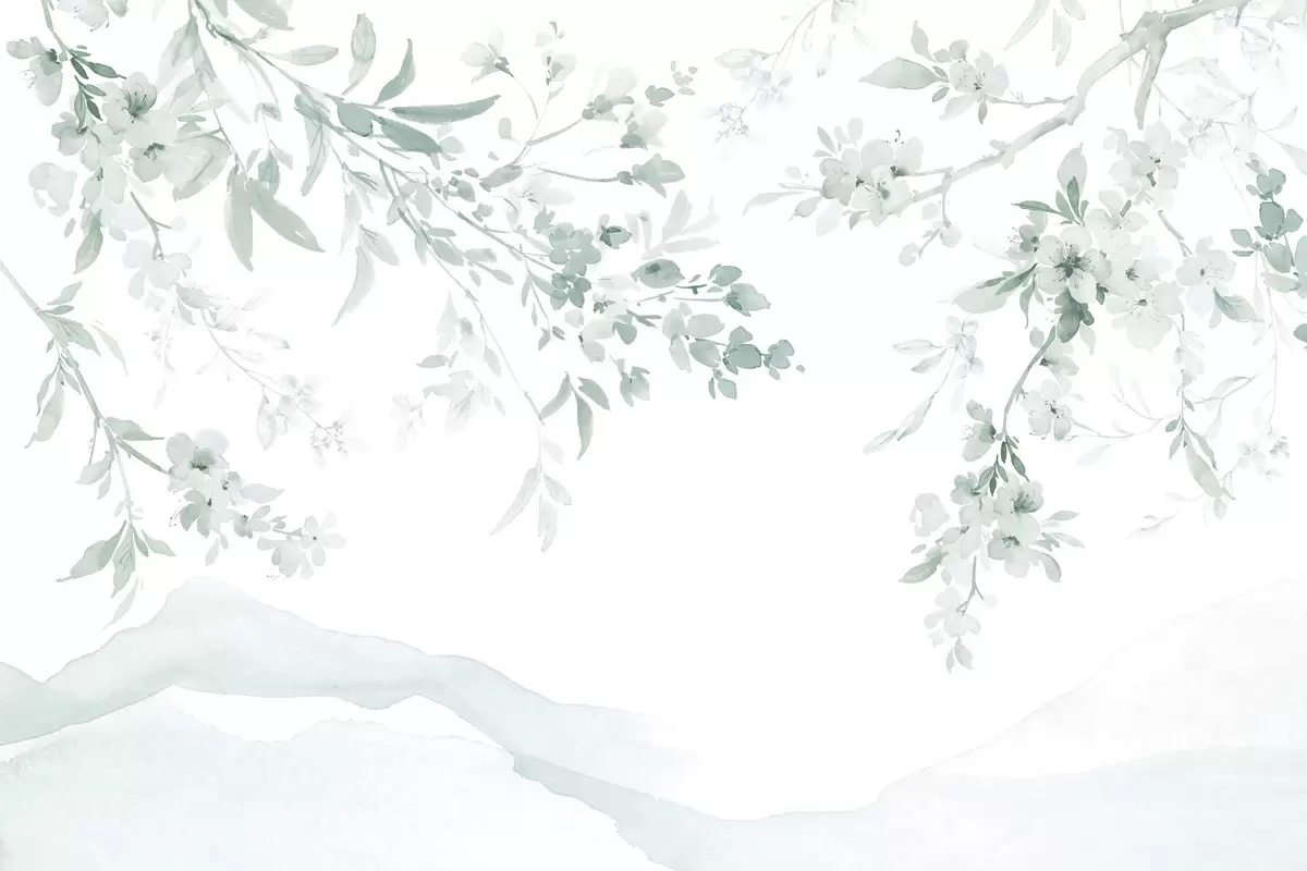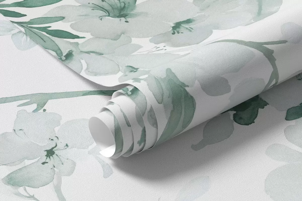 Carta da parati Rami fioriti, imitazione dell'acquerello, sfumature verdi nr. w03935v3