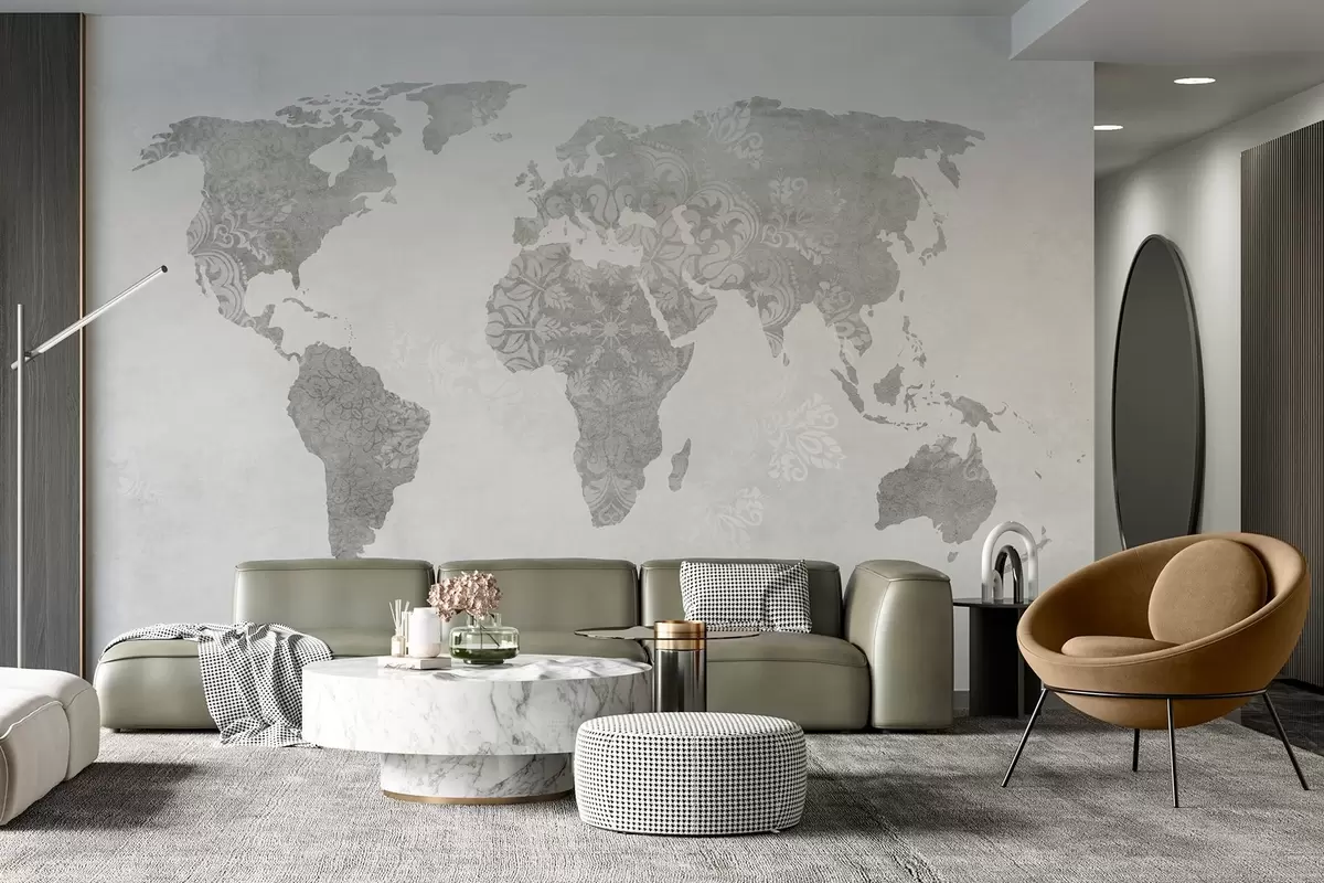 Carta da parati Mappa del mondo con motivo, tonalità monocromatiche nr. w03954v1
