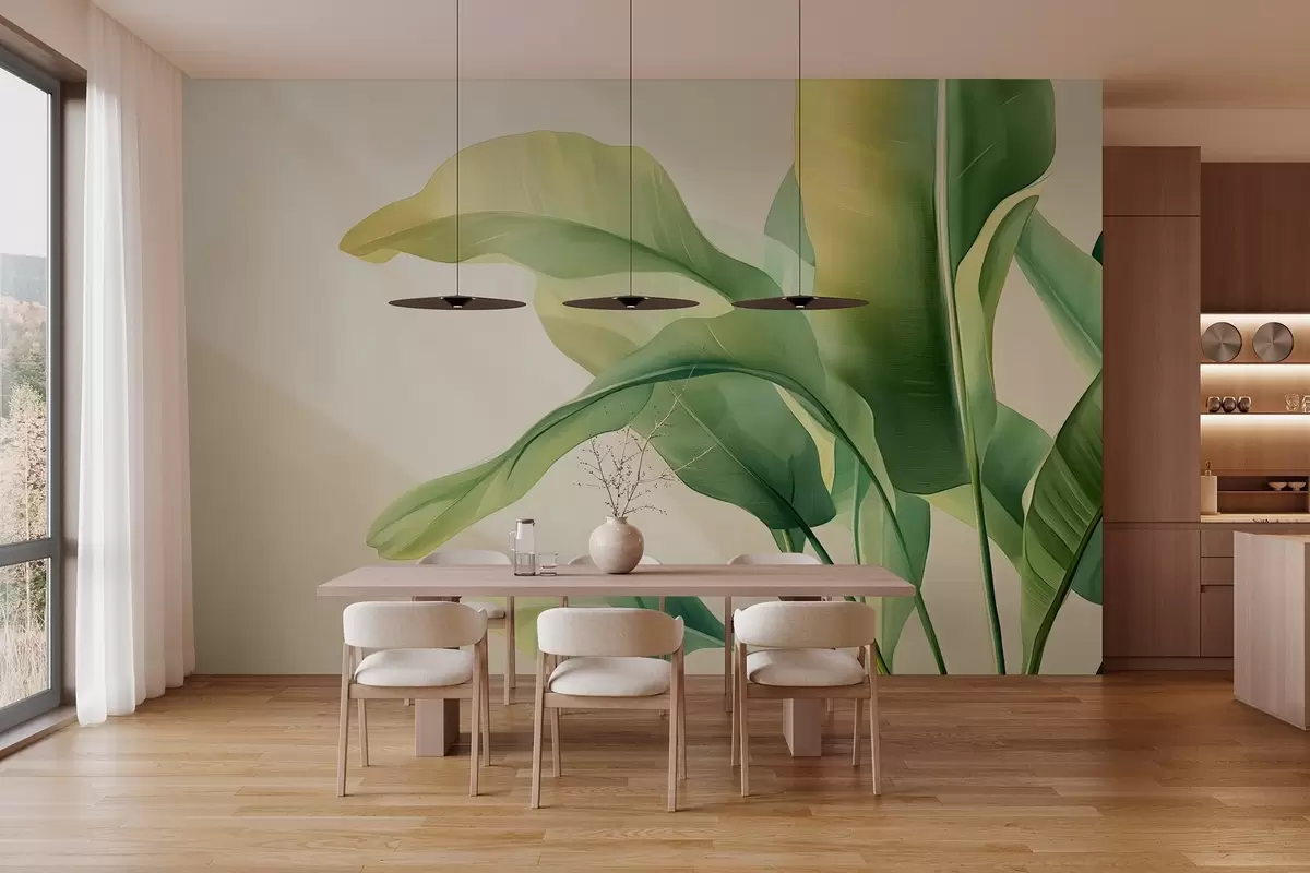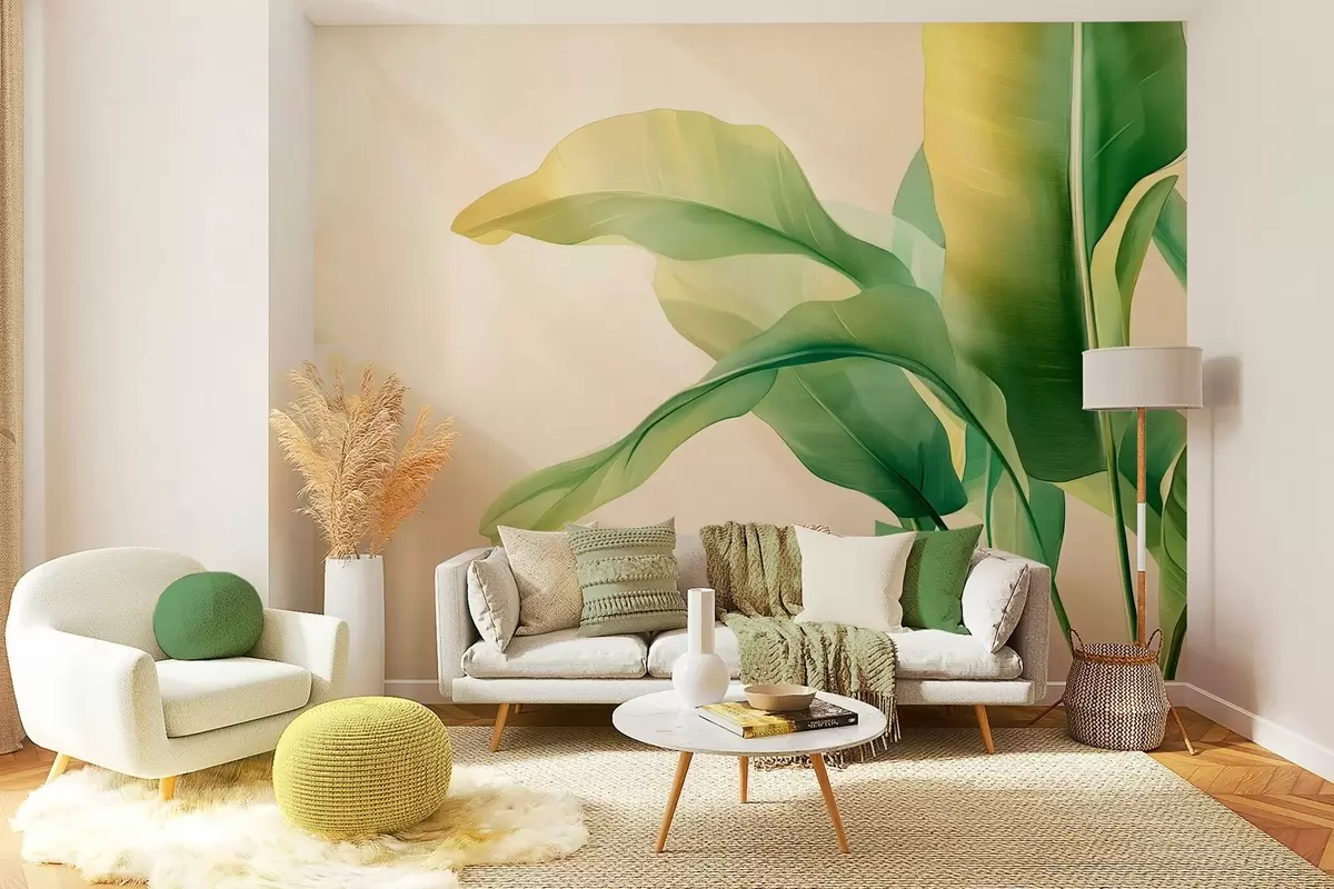 Carta da parati grandi foglie verdi tropicali a lato nr. w03959