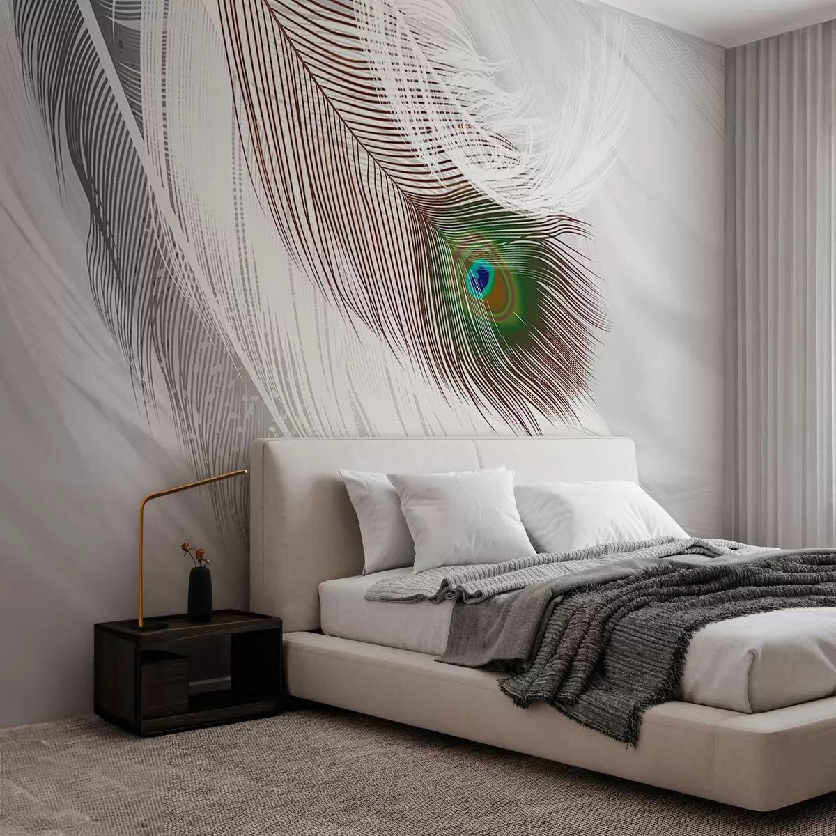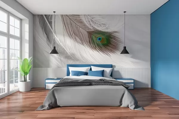 Carta da parati una grande piuma di pavone tra le piume nr. w03961
