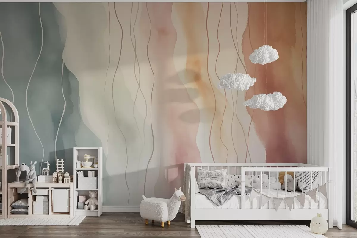 Carta da parati Onde astratte ad acquerello in colori caldi e freddi nr. w03989
