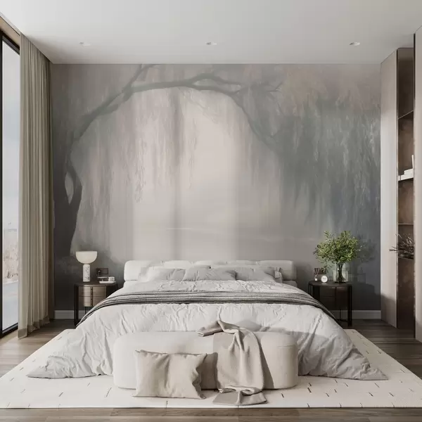 Carta da parati Mistico banco di salici nella nebbia del mattino nr. w03995