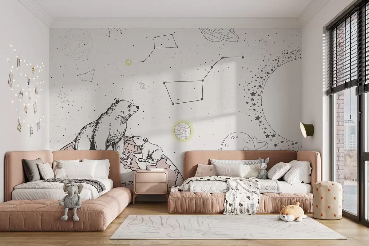 Carta da parati Orsi e stelle su sfondo marrone, tema astronomico nr. w04002v2