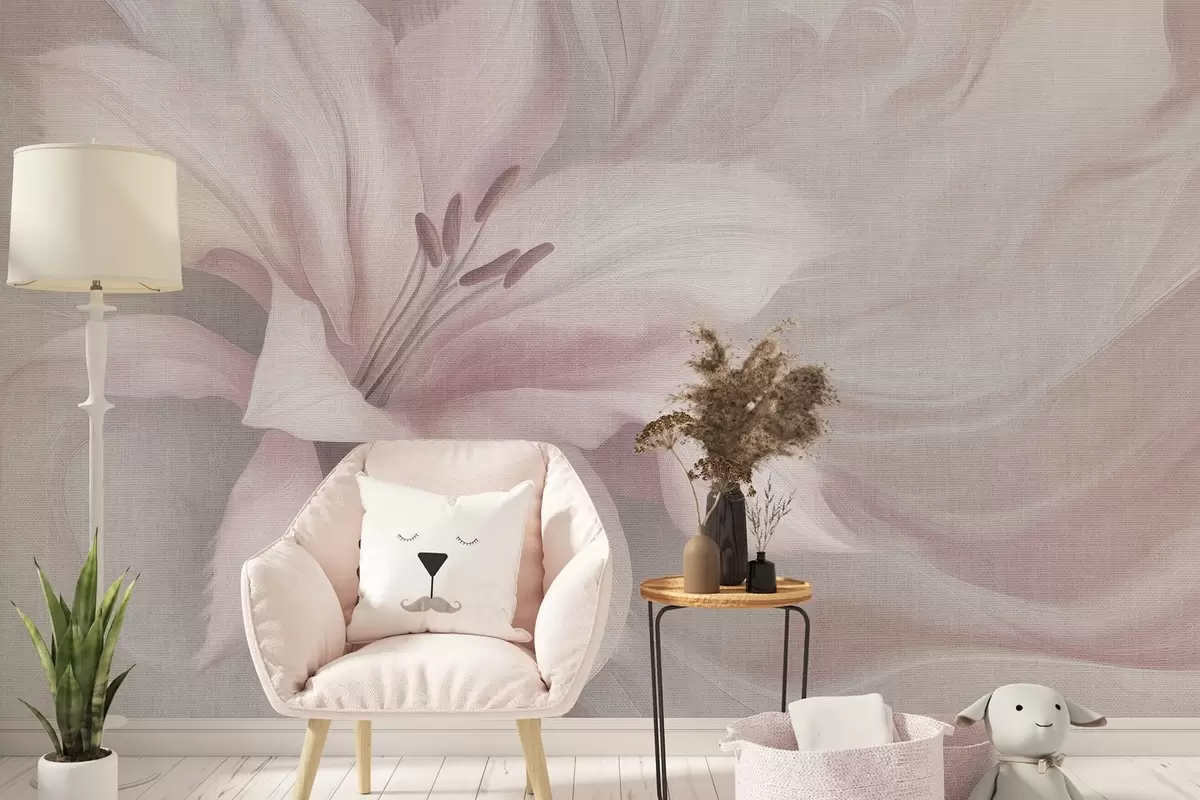Carta da parati Astrazione fluida di fiori di giglio, colori floreali, rosa e beige nr. w04006v4