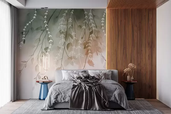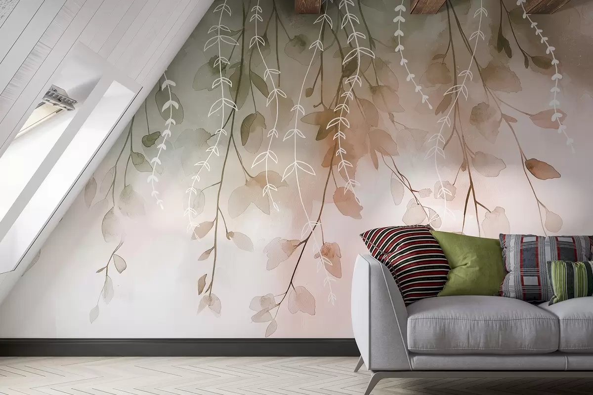 Carta da parati Rami con foglie in stile acquerello, colori naturali dell'autunno nr. w04007v1