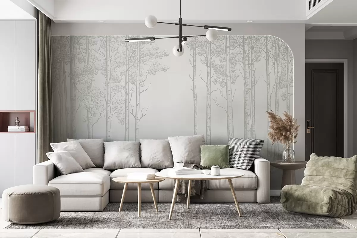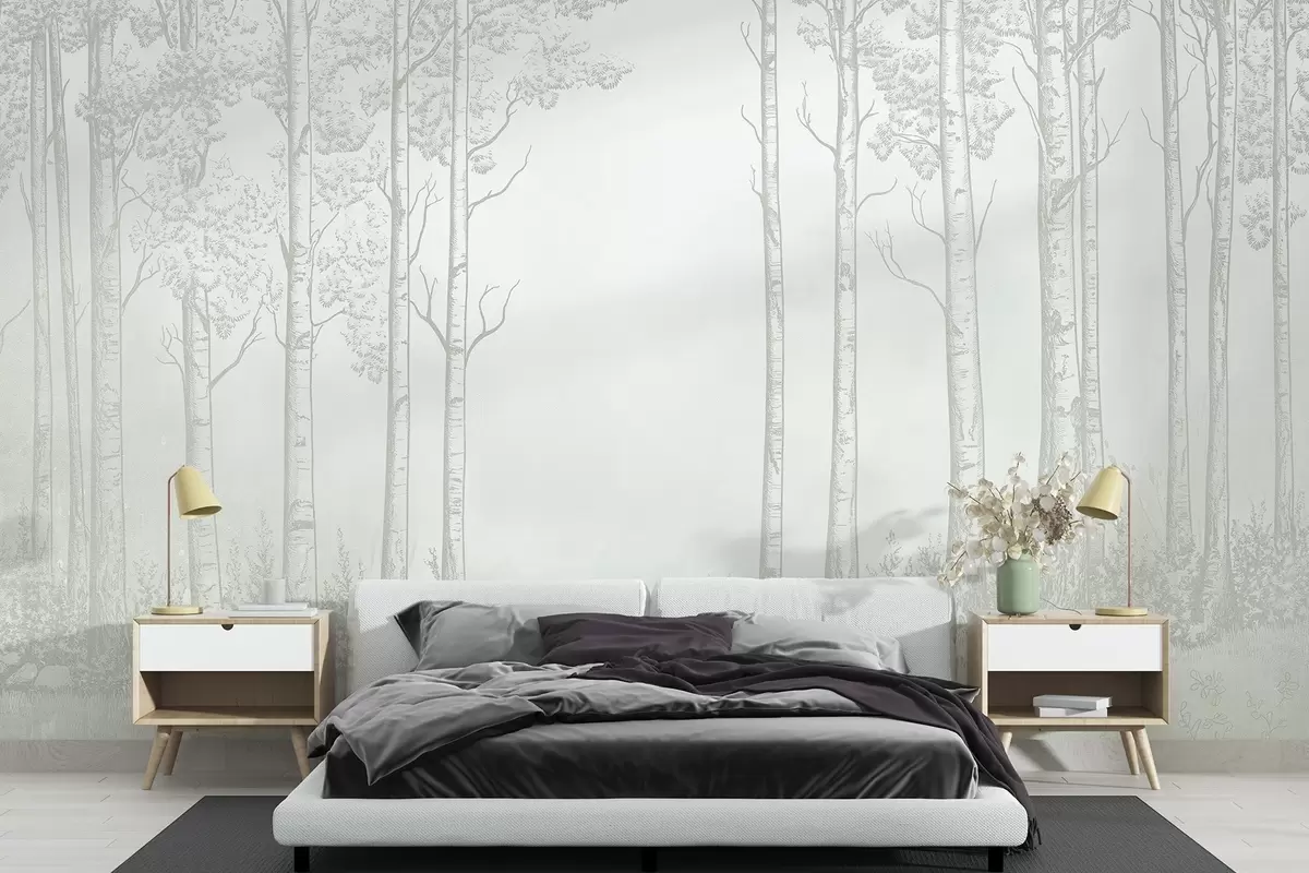 Carta da parati Foresta con betulle, minimalismo, natura, tavolozza di colori verdi nr. w04009v1