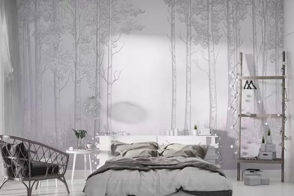 Carta da parati Foresta con betulle, minimalismo, natura, tavolozza di colori rosa nr. w04009v2