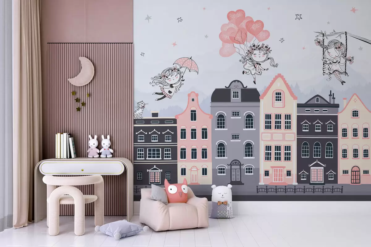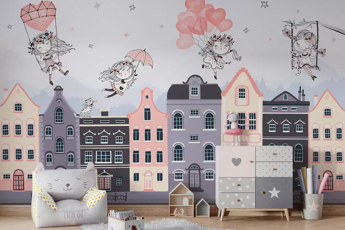 Carta da parati Paesaggio urbano con ragazze carine nr. w04014