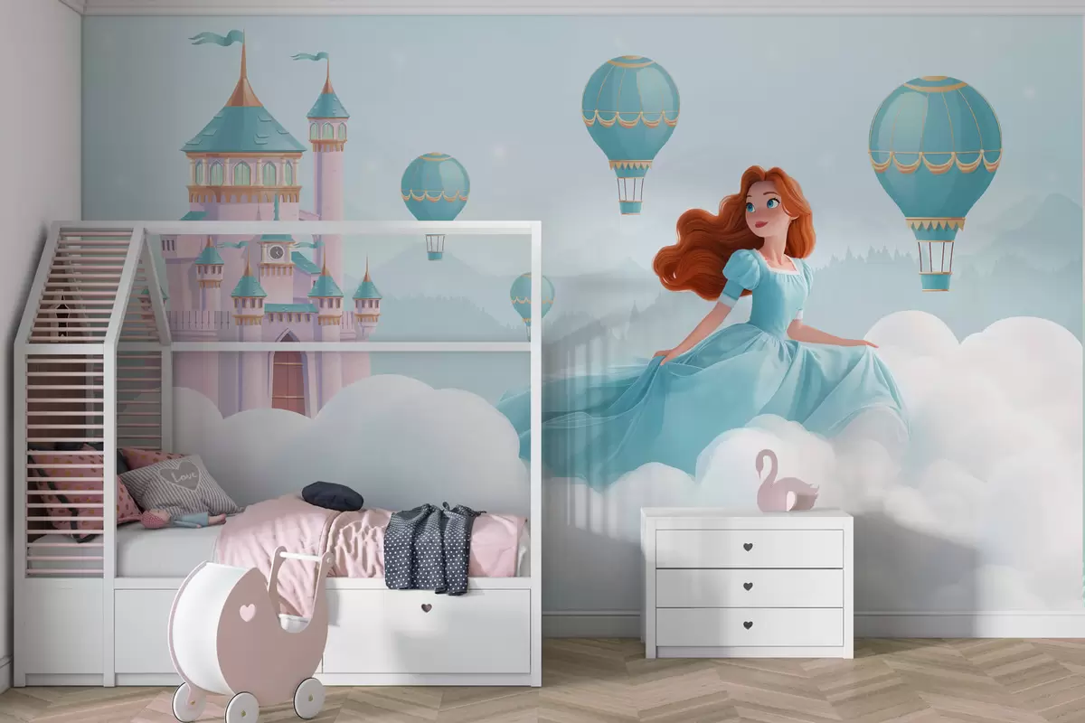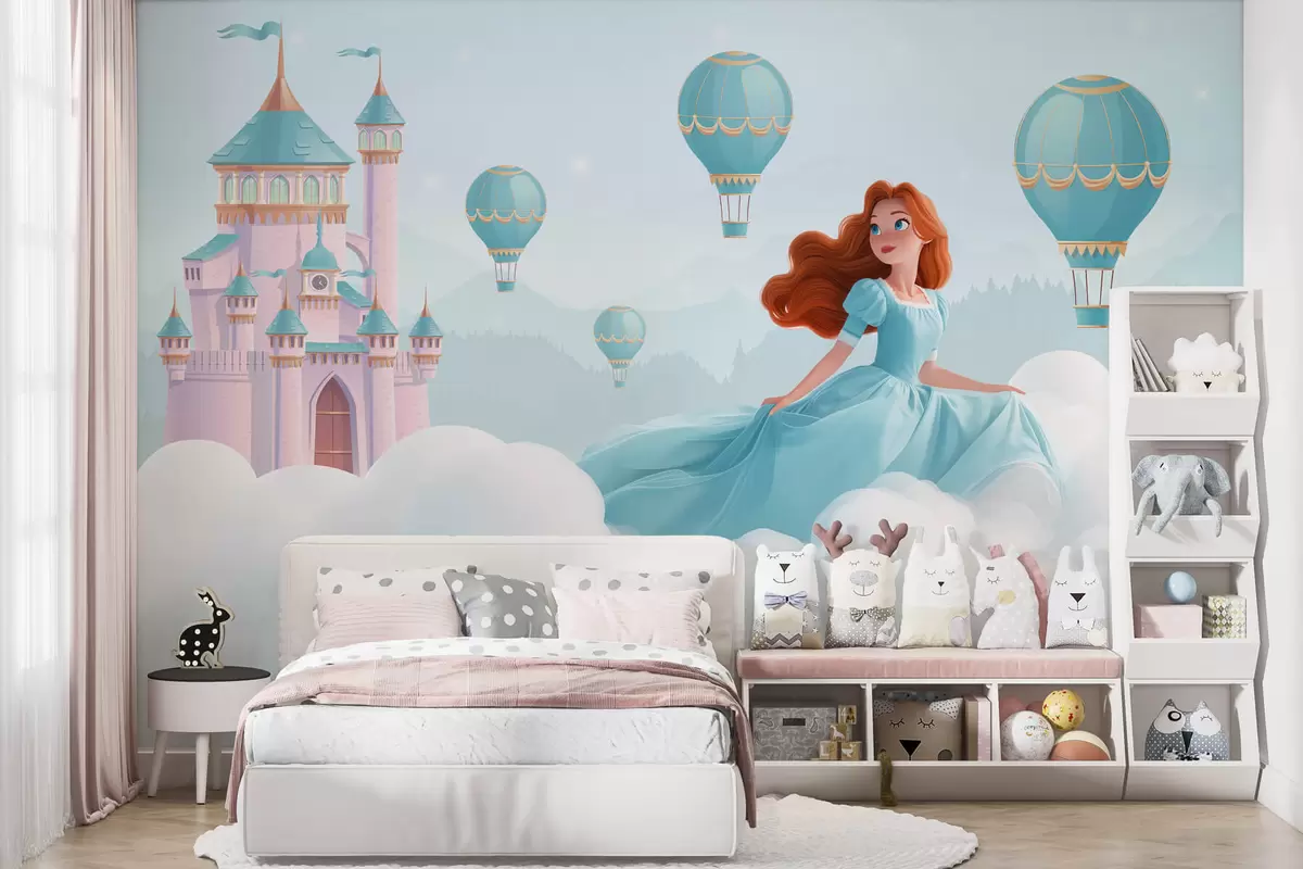 Carta da parati Principessa tra le nuvole sullo sfondo del paesaggio con il castello nr. w04015